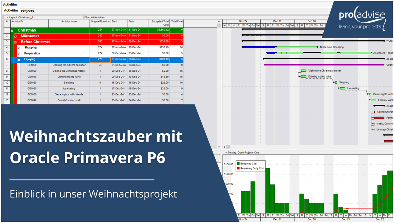 Erleben Sie die Magie von Weihnachten– alles festlich koordiniert mit Primavera P6! Das Jahr neigt sich dem Ende zu, und wir möchten heute ein besonderes Vorhaben mit Ihnen teilen – unser "Projekt Weihnachten". Gute Vorbereitung ist bekanntlich die…